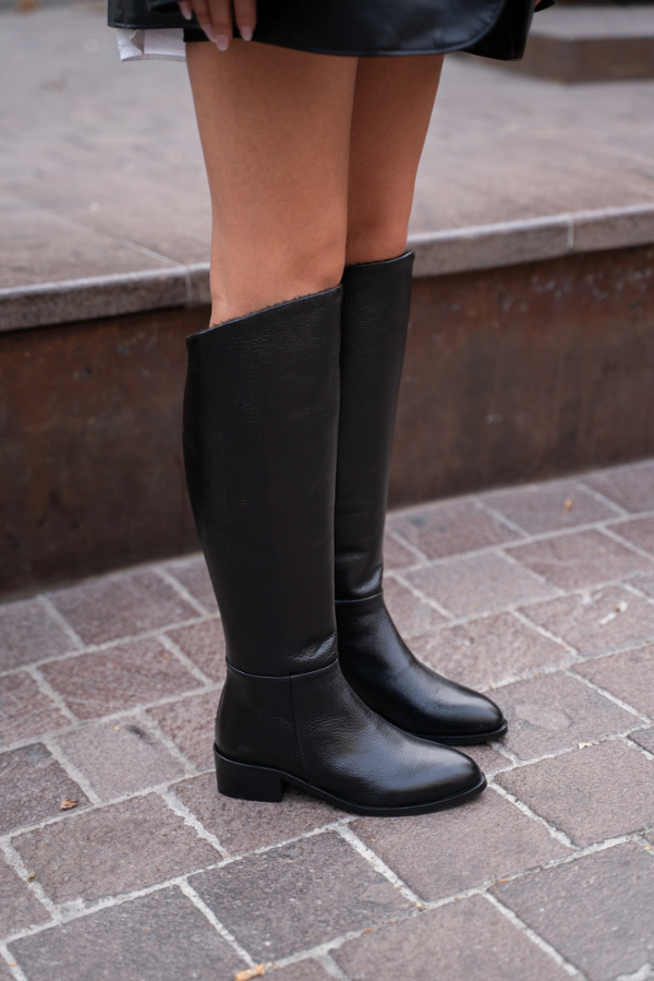 Dora Siyah Renkli Gerçek Deri Diz Altı Kadın Çizme